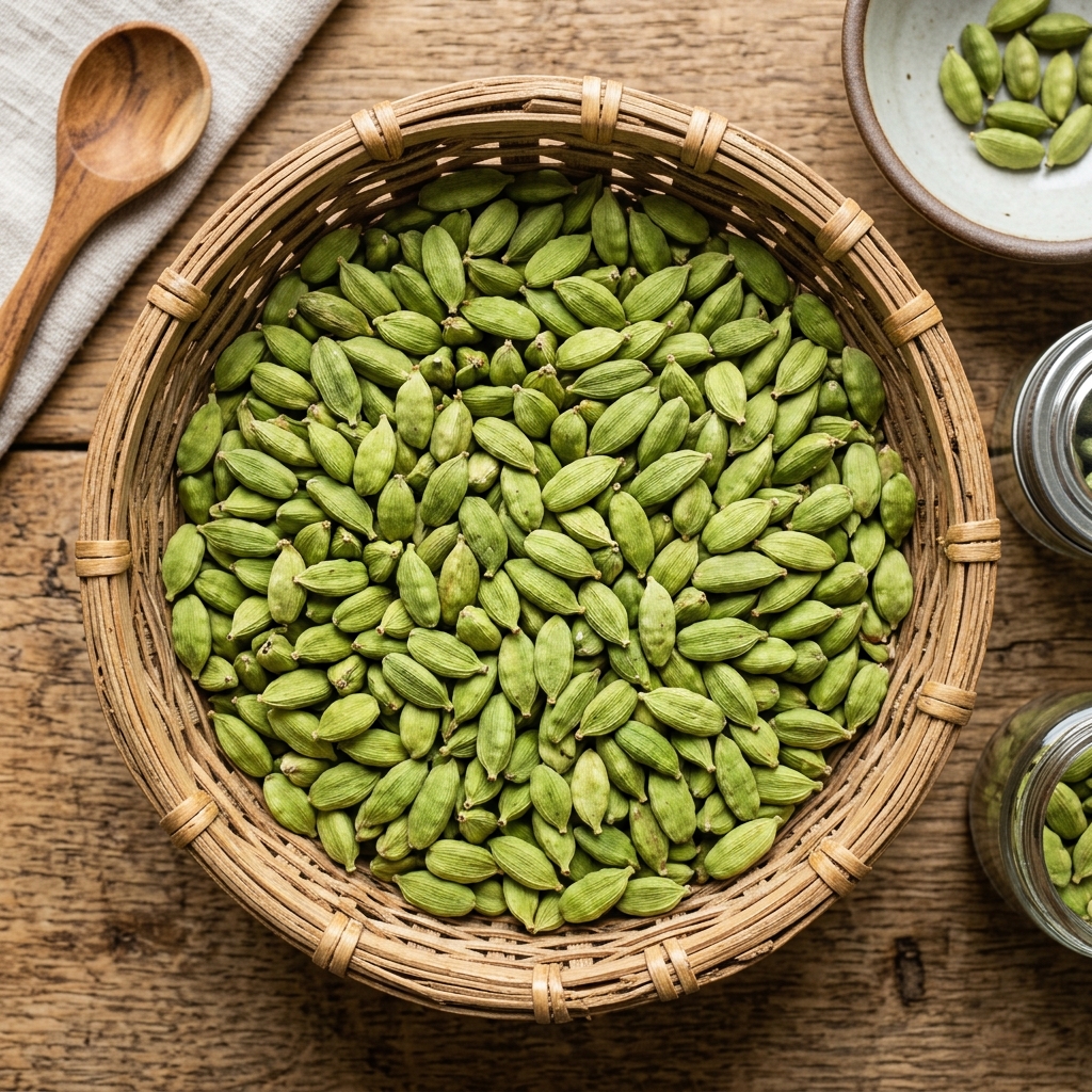 our premium green cardamom boasts an intense aroma and bold pods. These hand-sorted "Queen of Spices" deliver a refreshing, sweet-spicy flavor profile perfect for gourmet cooking.